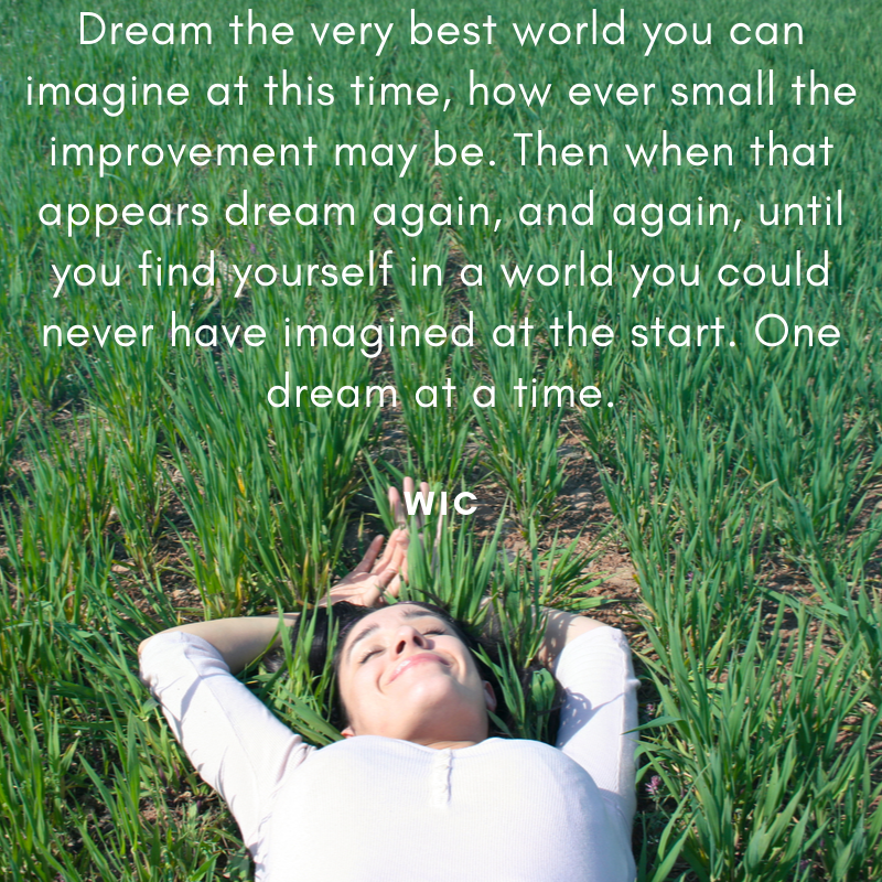 I meet so many people who live their lives accepting what they think they deserve which would be great if most didn’t have low, sometimes really low, expectations. Use that dream to improve your world, maybe step-by-step. Maybe you can’t imagine you’d ever be in that place you’d love to dream about so break it down into smaller steps. Bite size chunks. Maybe your best dream is big for you but small for someone else. So? Live the best life you can today and don’t allow yourself to be measured against others.