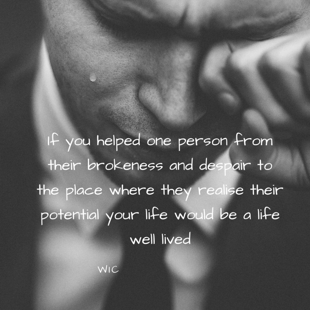 Now the world will often accept the persons self assessment. Most opt not to get involved. It’s an age old strategy as storyialized (I think that’s a new word) by Jesus himself in his telling of the tale of the Good Samaritan. Remember how the reaction of the world is to pass by on the other side? To look clear past? The easy option is believe someone who says they have no value and as such affirm and strengthen their belief. The path of least resistance is written into physics.