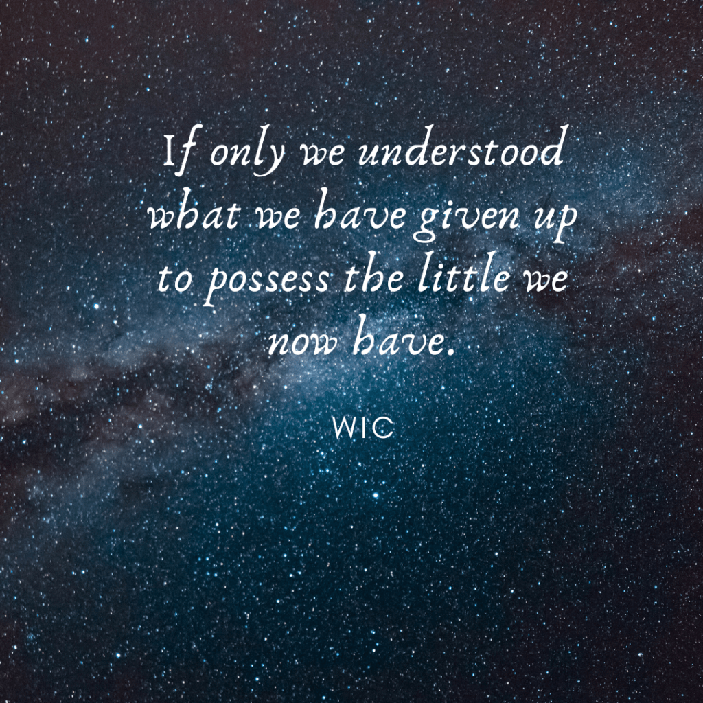 That’s where I’m at. I’m thinking that the truth is not about what we must become, not what we must possess or experience but is actually about what we need to give up. Basically, we’re heading in the wrong direction as we seek fulfilment, that we’ve been lied to when we were told that we needed this or that to find satisfaction. Then when we got it the experience was short lived.